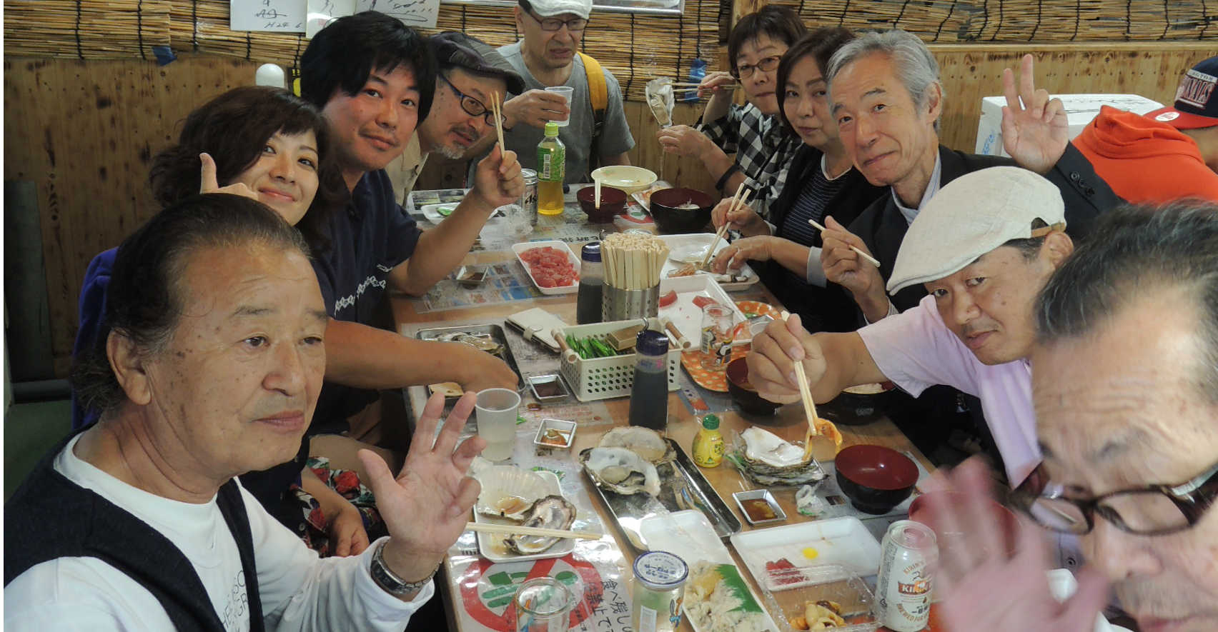 帰りは恒例の塩釜仲卸市場にて朝から海の幸で酒盛り!!