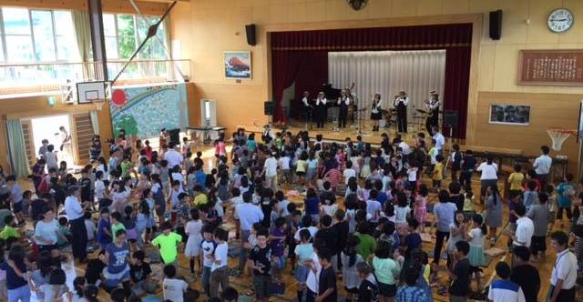 生徒さんたちにお行儀良く坐って聴くように指導されている先生方には、本当にご迷惑をおかけしましたが、汗だくになりながら全身で音楽を受け止め、発散している子供達を見ると、こういう音楽をやっていて良かったなって心から思える瞬間でした。