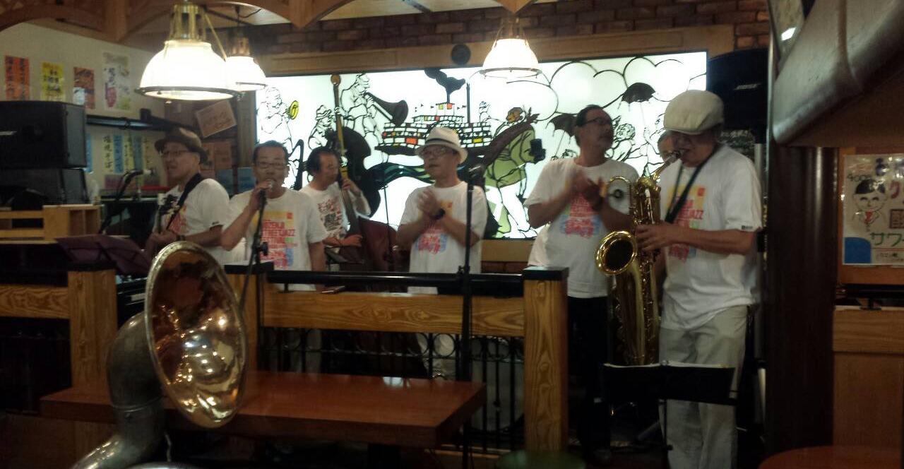 春・秋の新宿トラッドジャズフェスの仕掛け人、永谷さんが経営する居酒屋「銅羅」で土日の昼間開催される「Do-Live」に初めて出演させていただきました。3時間半の間に4つのバンドが2回づつ演奏するという超タイトな尺の中で、楽しく演奏させていただきました。